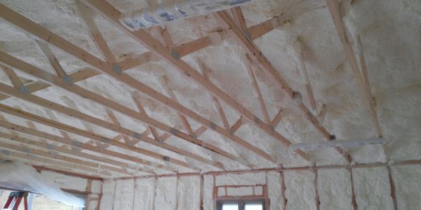 We install a 2 Pound Closed-Cell foam in areas that require a moisture barrier or have restricted space for insulation. We can achieve code compliant insulation and vapor barrier requirements with under 4" of thickness